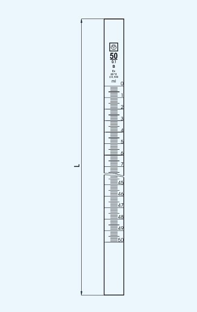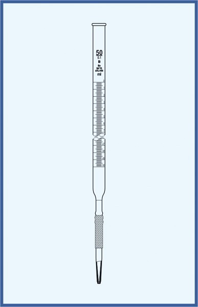 Byreta, tr. AS, so Schellbachovým pruhom, priamy kohút, sklenené kladívko, 25/0,1 ml - iné varianty