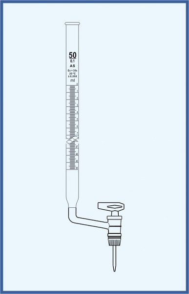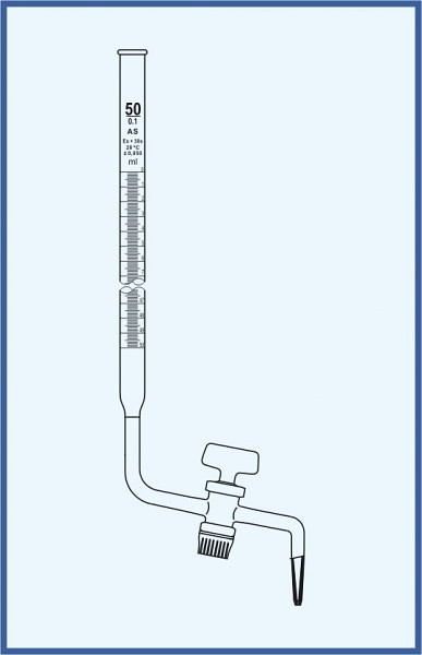Byreta, tr. AS, so Schellbachovým pruhom, priamy kohút, sklenené kladívko, 25/0,1 ml